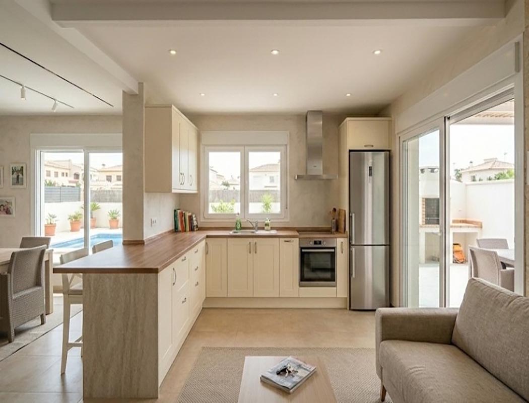 Este proyecto en chalet en Alicante, es el ejemplo perfecto de cómo una obra mayor puede redefinir por completo el corazón de una vivienda, ganando amplitud, luz y diseño.